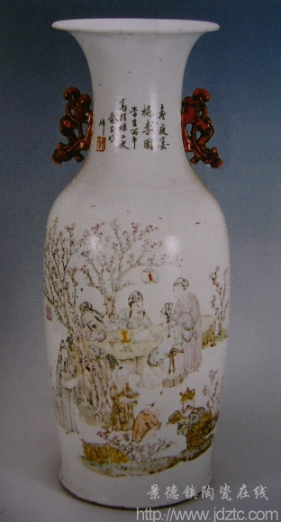 [组图]俞子明《春宴图》双耳大瓶 民国时期         ★★★ 【字体: