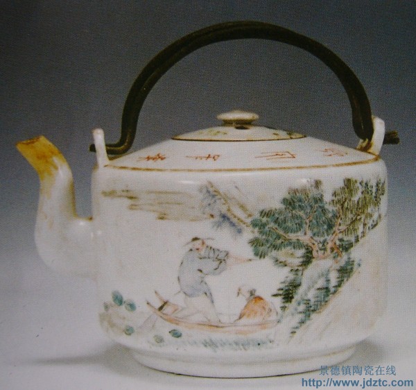 | 辅臣《秋水行舟图》浅降彩提梁壶 | |||||