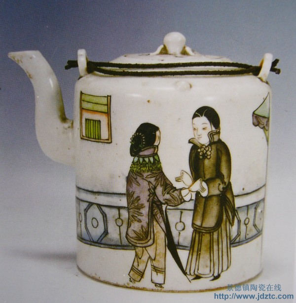 毛子荣《民国仕女时装图》提梁壶 白文宏藏