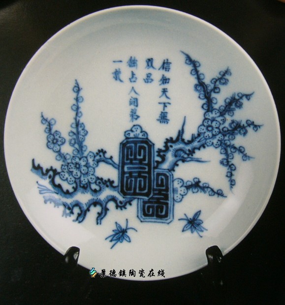 光绪·青花花卉诗文盘