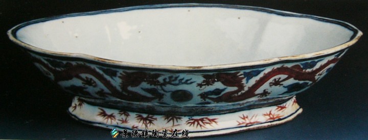 光绪·青花釉里红龙纹盘