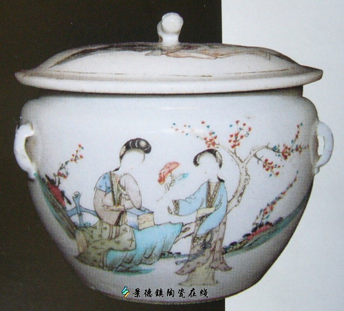 徐焕文造底款·徐焕文作·桃花美女·粥罐