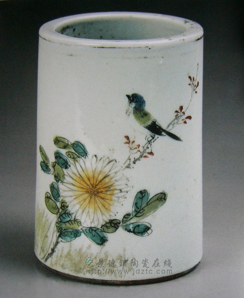 民国彩绘花鸟笔筒·江西曹协昌磁