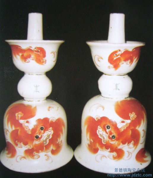 太少红狮 胡荣发自造 矾红对烛台 1919年