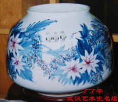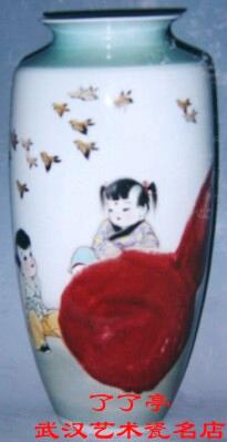 折口,短颈,鼓腹,圈足。作品天籁之境,老松遒枝,松下仙人对弈,从布局上打破了空间的寂静。整个作品清新典雅,潇洒飘逸,风骨独具,二仙对弈皆席地而坐,中置棋盘,神情专注,若有所思,可见棋战激烈.。人物绘画绝无佻达狂怪之态,雅拙而又古朴,引人遐思幽远。