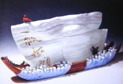 魏胜耀雕塑创作独辟溪径,以各种江南水船为题材,以诗情画意为意境,以唐诗宋词为创和素材,创作了一系列“船”题材作品,人称“船王”。作品注意意境的营造,文学性较强,善于将传统手法和现代告型意识融合在一起,善于利用各种材质来反映完善其作品,具有较强的民族性,而越有民族性就越有世界性。故其作品深受海内外各界人士的欢迎。尤其《寒江独钓》更是收藏、馈赠之佳品。