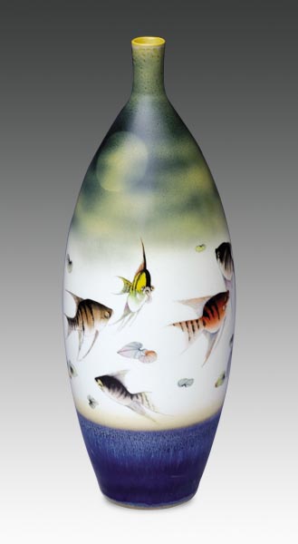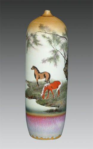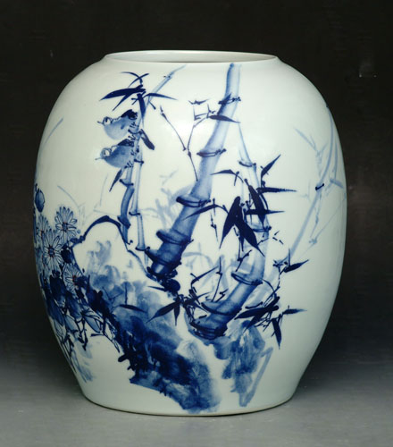 王乐华: 女,1956年12月出生,江西波阳人。1984年毕业于景德镇陶瓷职工大学美术系,后在景德镇陶瓷学院进修,工艺美术师。擅长青花、山水、花鸟,工笔为主。在装饰上能有机地把书、画、图案和造型融为一体。作品多次获奖,其中“芭蕾舞”获首届景德镇国际陶瓷节装饰二等奖,捏雕“野趣”获第二届陶瓷节三等奖。创作的手工壶被选入《中国景德镇艺术陶瓷精品鉴赏》。