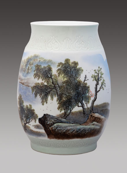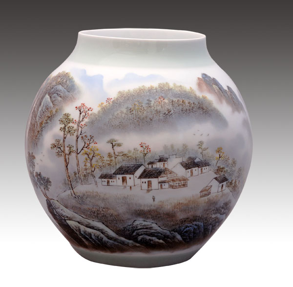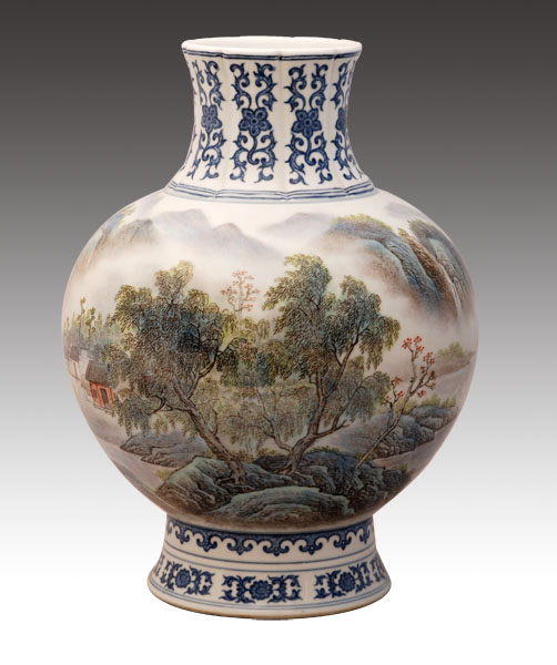 | 王昌豹,江西省乐平市人,现任高级工艺美术师, 1975 年生于陶瓷世家,系景德镇市陶瓷美术家王云泉嫡孙,高级工艺美术师王乃水之子。受家庭的影响,从小酷爱陶瓷艺术,在祖父王云泉和父亲的精心指导下,研究陶瓷山水画及中国画,从艺十年如一日,勤耕不辍,手摹心追,潜心研究,打下了扎实的功底。 近年来,在继承学习景德镇传统陶瓷山水画的同时,注重创新,并柔和中国画的技法,应用与陶瓷上,作品曾多次受到行家青睐,并被国内收藏家珍藏。 在 98 年创作的一幅 3.6 尺双面釉长条(一面粉彩,一面雪景)在山东淄博以高价被人收藏, 400 件花瓶《幽谷情趣》被香港收藏家收藏,在 2005 年 11 月作品《山水》获得中国上海国际艺术节《第七届中国(国家级)工艺美术大师精品博览会》暨《中国工艺美术优秀作品评选》中国工艺美术优秀奖。 作品风格被同行称为“有其父风范”