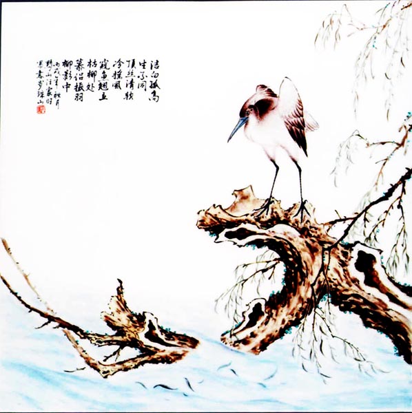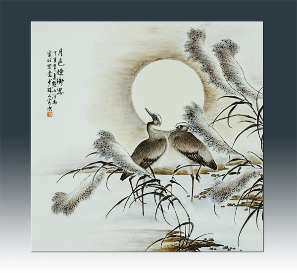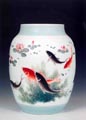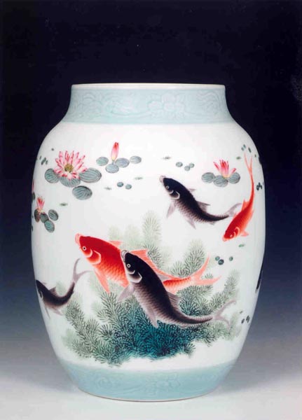 汪家旺 字禹,安徽黟县人,高级陶瓷美术师,青年陶艺家,中国工艺美术学会会员,江西省工艺美术学会会员,从事陶瓷美术工作二十余年。先后求学于瓷都名家毕渊明、熊晓峰、邓肖禹诸先生,受益非浅,后为瓷都“八虬之一,梅花大师”王鹤亭老先生之入室弟子,技艺大进,作品工写兼备,形神具佳,构图新颖,讲究章法。作品多次参加陶瓷展览,并获奖。深受港、澳、台及海外人士的喜爱并收藏。汪家旺擅绘花鸟、草虫、鱼藻、走兽,尤精画鱼,被现代陶瓷名家评价为瓷都“第三代画鱼高手”。