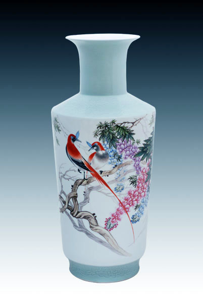 张为彬 江西省乐平市人,高级工艺美术师,自幼跟随花鸟大王景德镇市首届陶瓷美术家张景寿学习绘画艺术,跟随大伯近二十年,得到了老人的悉心指教,深得其艺术真谛。中途又在景德镇陶瓷学院美术系学习,专业的理论知识加之不断实践的艺术生涯使之积累了丰富的知识和经验。 他的作品构图严谨,笔法细腻,格调高雅秀丽,有一股扑面而来的清新脱俗之风,令人赏心悦目。 近几年来,他的作品新意迭出,硕果累累, 2002 年他的作品获全国中青年陶瓷作品大赛一等奖。 2003-2006 年他的作品分别荣获一等奖、二等奖多次,景德镇老艺术家盛赞他是景德镇陶瓷花鸟绘画中的一匹“黑马”。许多港、澳、台、沪、粤商争相购买他的作品珍藏。