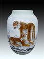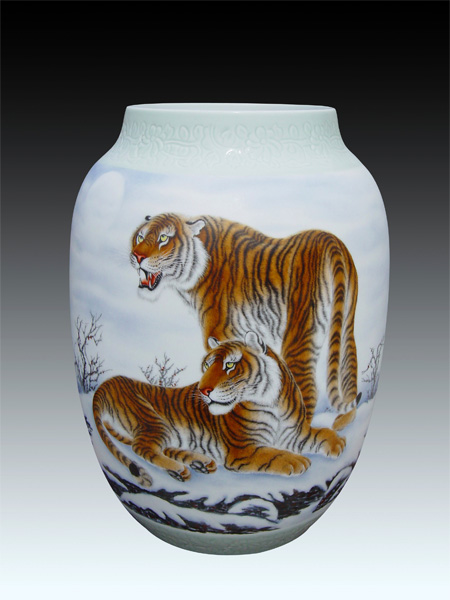 万进文 艺名雄鹏, 1968 年出生于江西都昌。高级工艺美术师,景德镇“陶粹轩”艺术创作室主任,毕业于天津艺术教育进修学院。系中国工艺美术家协会会员,中国书画家协会理事,中国艺术摄影学会会员,江西省美术家协会会员,江西省摄影家协会会员,北京剑楠文化交流中心客座教授。 2005 年被授予“世界华人杰出艺术家”荣誉称号。擅长釉上人物、花鸟、走兽等,尤善指画《雄鹰》,在瓷坛上独树一帜。陶瓷书画作品在全国各类大赛中获金、银、铜奖及最佳工艺奖等二十余项。作品及传略载入《景德镇当代陶瓷美术百家》《 21 世纪中国书画名家经典》《世界名人录》等 20 多部大型典籍。陶瓷作品在《景德镇日报》《江西日报》《作家报》《人民日报市场报》《世界知识画报》均作了专题报道。