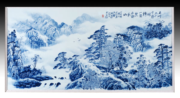 青花瓷板《村寨翠微中》获得"中国首届千年瓷都杯全国书画大赛"陶瓷类金奖.