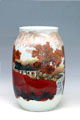 其创作思路开阔,善于发掘陶瓷材质本身的艺术表现力。作品风格清丽俊雅,意境深远,给人留下无穷韵味。