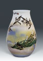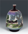 其创作思路开阔,善于发掘陶瓷材质本身的艺术表现力。作品风格清丽俊雅,意境深远,给人留下无穷韵味。