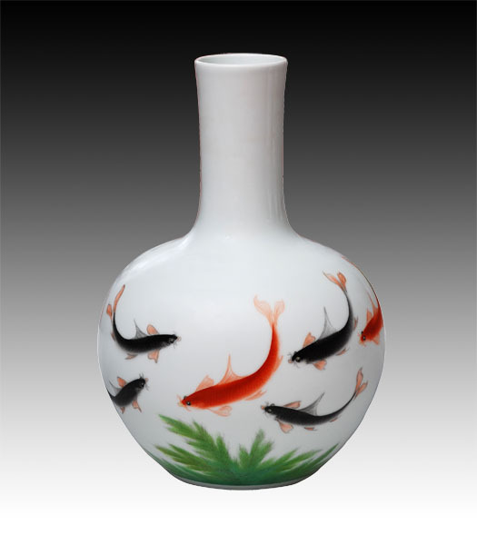 特别是其绘画的《江山如此多娇》、《碧池清影》、《鱼乐图》、《花开富贵》等作品,深受陶瓷爱好者的爱好,并被收藏。