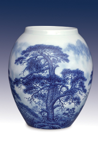 Liao Zhidan who was born in “The Porcelain City” Jingdezhen in 1981 revels in porcelain art from a child. He studied in the art department of JingdezhenHighClassCollege and graduated from the art department of JiangxiTeachersUniversity. He learned from several porcelain artists for canonical painting art education, especially regarded highly by his master Mr.Lu lvjun, “the king of blue and white porcelain art of the time”. Through more than ten years’ study and research with great concentration on blue and white porcelain in system, Liao has his own creative ideas and painting style gradually. Liao is very good at blue and white porcelain painting, who paints aesthetic with high technique, especially in amalgamation of the occidental painting with the Chinese painting into organic whole. His works, endued with clear colors and verve, are both realistic and enjoyable, precise and unconstrained, showing an elegant and clean article painting style with sensation involving in scenery. Liao has won several native and international awards and high repute with his works.