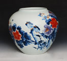 钟剑 笔名雅居士,1977年生于景德镇,曾进修于陶瓷学院美术系工艺美术师,景德镇市美术家协会会员,国际高岭陶艺学会会员。作品清新典押,技法工写俱佳,擅长釉下青花釉里红、斗彩、画面以梅、兰、竹、菊等为主体。2003年,代表作品《富贵图》(斗彩)、《含香》(釉里红)被深圳市政协高价收藏。作品多次获奖,很多作品被日本、美国、韩国、新加坡、香港等地区客商及收藏家珍藏。
