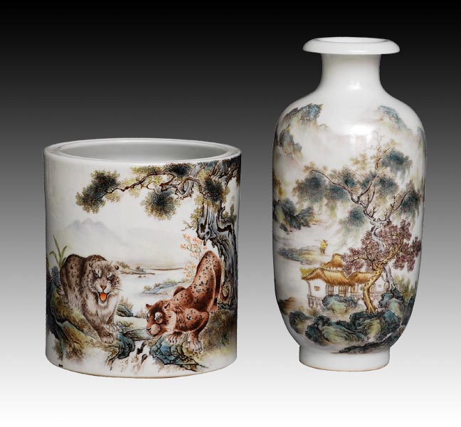 吕金龙,工艺美术师,九江人士,1981年生,擅长各种味道的釉中彩以及仿民国精品陶瓷、花鸟、人物、动物,尤其擅长山水。