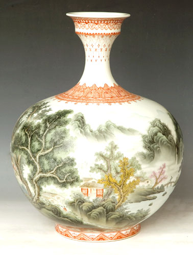 陈传勇 祖籍浙江,1968年生于瓷都景德镇,1988年毕业于南昌有色金属工业学校。因自小对陶瓷绘画情有独钟,故自费进景德镇陶瓷学院进修,努力提高自己的艺术修养,加强理论深造,擅长工笔人物、花鸟、山水,构图奇巧,用笔传神,人物、花鸟维妙维肖。同时对民间手指画也有较深的研究。1999年独立创办大型瓷坊“鸿升画院”任院长兼艺术总监。大批作品深得陶瓷爱好者喜爱和收藏家青睐,远销马来西亚、印尼、泰国、新加坡、法国、香港等几十个国家和地区。