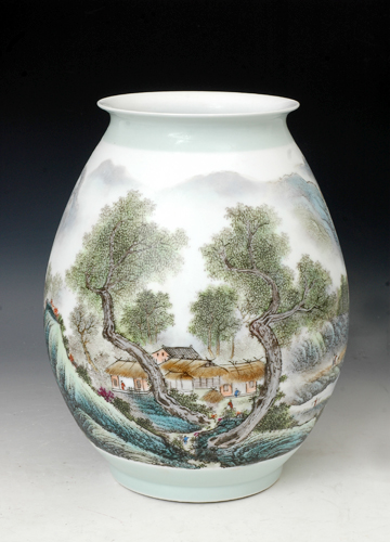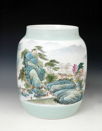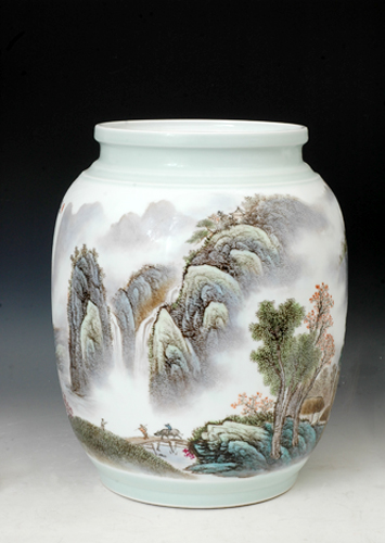 地址:江西景德镇市华阳商贸城南一路35号 现在他画山水画,平面大到3.3米瓷板,小到笔筒,每件都自由驾驭,而已件件有特色,有创意,其作品被国内外瓷商收藏。