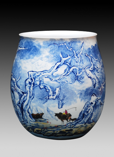 杨天宇 艺名:杨涛,高级陶瓷美术师(高级工艺美术师),祖籍江西都昌,1990年拜在景德镇陶瓷学院邹天成教授门下学习山水画,1999年获得全国书画等级考核陶瓷美术专业二级资格。中国东方美术家协会会员、山西汾阳当代艺术画院高级书画师、景德镇高岭陶艺学会会员、景德镇美术家协会会员、昌南书画院专职画家、创办“逐梦轩”工作室。 1996年6月,作品“一寸乡心万里回”获中国当代文艺新作汇展优秀奖并被中国当代作家代表作陈列馆收藏,同年9月“怒火横烧”获湖北“旅游杯”文艺新作展优秀奖并被赤壁陈列馆收藏;2001年个人艺术传略与作品“神往”入选《中国当代书画艺术家辞典》。2001年作品“江南旧梦”入编《景德镇中青年陶瓷艺术家作品博览》第二卷。 2001年接受中国美术家协会陶瓷艺术委员会邀请参展,参加唐山第二届全国陶瓷艺术展览组织委员会邀请展。2003年“秋江图”、“松鼠”获全国书画大赛“银奖”,并被授予“书画领域杰出贡献奖”,同年作品“松鼠”入编《当代书画名家墨迹大观》一书,2004年入编《中国陶瓷艺术家辞典•景德镇卷》,2006年部分作品入编《景德镇陶瓷艺术家作品收藏图库②》。