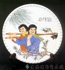 |名称 白釉彩绘草原英雄小姐妹瓷挂盘