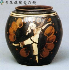 Pottery Jar on Black Ground and in Underglaze White with Painting of "Sun is Rising", an episode of "White Hair Girl"