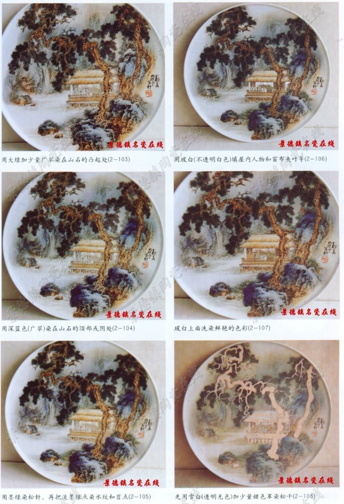 图片很大,如果网速较慢,请稍等 粉彩山水画基本步骤:用书画墨汁调淡画出白描底稿,然后先画前景的两株松树,取双勾法,自上而下用中锋线条,浓墨勾出松树主干,然后勾出松鳞和枝丫。在料未干前用狼毫小笔打扁擦出松鳞的阴阳纹理。再用浓墨画松针,在规范中求变化,注意松树的外形特点,和树姿的美感。