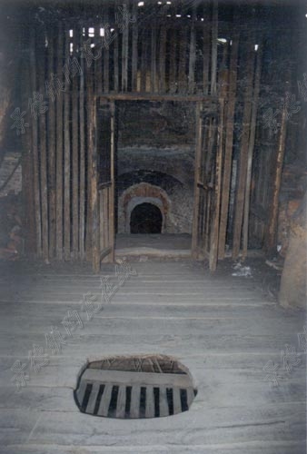 镇窑窑顶由前往后有通风孔(窑头顶上)。左看火孔,右看火孔,后看火孔以及烟囱看火孔等,分别作通风和观测窑内温度气氛之用。