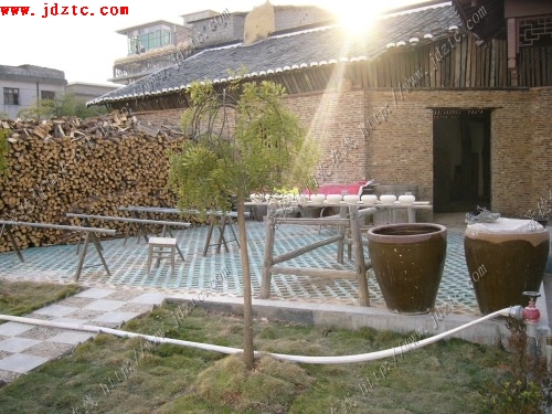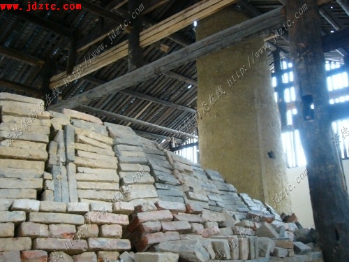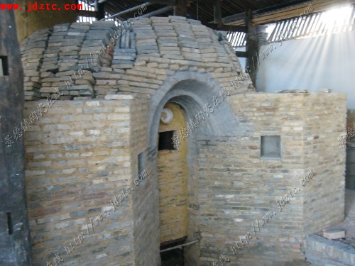 景德镇窑烧炼 清代陶器人窑,初曰溜火,欲习于火而无蠃。既曰紧火,欲孰于火而无缩。风火之窑,审候为难。清雍正《江西通志》称:“造坯彩画,始条理也。人窑火候,终条理也。”人窑至出窑,以三日为率。第四日晨开窑,器匣尚带紫红色,不能近。开窑匠用布十数层,制手套,蒸冷水护手。复用湿布包裹头而肩背,然而人窑取器。器尽,乘热安顿新坯。因新坯带潮,就热窑烘炙,可免火候折裂、穿漏之患。 民国时期,烧窑分上半夜与下半夜两个阶段:烧上半夜,也称上半段。这一阶段,又分三个小阶段:1.发火阶段,封门以前,在火床的左右吸后缘周围,预先用柴堆成高约1米余的中空半圆环形围墙,另以干柴10余块,置于火床上,封好窑门。从发火孔投进5块—8块干柴,并打开投柴孔烧二个小时左右,待窑内前面1、2、3排匣柱略红,再掩门烧火。2.烘坯及烧氧化焰阶段。发火阶段完毕,窑头区的温度已提高到600℃左右,烟囱也开始有效地通风了。从这时起,即可逐步加大火力,这样烧一段时间后,烟囱口即可冒出微微之烟,窑中的火焰也正从前段渐渐延伸到后段。至火焰被拉至挂窑口附近时,窑烟便逐渐变黑变浓。火焰进入烟囱并冒出浓烈的乌烟时,烘坯及烧氧化阶段便大体结束。3.烧还原阶段这一阶段,通过烧还原焰,将坯胎中的高价铁质还原为低价铁质,即把氧化铁还原为三氧化二铁,使烧出的瓷器呈青白色。这种色泽为景德镇瓷器重要特色之一。此时投柴量须明显增多。因镇窑未设减少通风量的装置,故除烟囱作用的变化之外,只有靠增加投柴量的方法产生还原气氛,使窑内前后段匣钵内坯的还原作用渐次完成。窑内还原的状况可以通过观察烟囱冒烟的情况来判断:当囱口冒出“狮子头”烟时,即说明窑内已进入全面的还原阶段,当烟囱冒出的烟痕逐渐稀薄,即说明窑内的还原焰已进入末期。 烧下半夜,也称烧后半段。这一阶段又分作热火、速火二小段:1.热火阶段,当余堂内匣柱已红3/5,火苗已超过匣柱顶3尺—4尺以上时,须将铁钩伸人火床卸去前装的平铺棋子,以扩大火网通风面积,加强烟囱通风力。各窑卸棋子的做法不尽相同,有第一次卸4棋子后停两小时左右再卸两棋子的;有分作三次卸的(即仅卸4个棋子);还有分作几次卸8个棋子的。总之卸棋子时间的选定,卸块数的多少,都要视窑室内温度上升等情况而定。2.速火阶段。此阶段又分为第一次清除炭渣,第二次清除炭渣及熄火三段:(1)第一次清除窑内炭渣,方法是先用小块柴投烧一次或二次,投柴后,不再用柴块封门,改用一匣钵(口向内,底向外)嵌入投柴口内,约过5分钟-6分钟,见匣底暗红后,即将冷水泼人火坑内,接着用通钩将火床上未烧化的柴块及炭屑全部钩下,并将冷水洒于其上,再把其移走,然后启开除渣孔,用通钩插入,扒清前一、二排匣柱下部直行火路内的炭屑,使其全落于火坑内,再将水泼于其上,然后把它移去。接着将十余块干柴置于已清除炭屑的火床上,封闭除渣孔,用箩箕盛松树皮屑数箕,由投柴孔倾人火床上燃烧,(取其容易着火的优点),仍照常投柴掩门烧,前后大约须8分钟—12分钟,但其间5分钟—6分钟火床上全无薪炭,火床下通风量却仍如前。由于启开了除渣孔,通风量当较前加大了很多,这样因过剩空气的输入而将窑内大腹小腹间的瓷坯所粘住的煤烟完全烧化(即清烟工作),且此后烧火既无火床后侧柴围墙的阻挡,而烟囱通风力在此时更加增大(烟囱内温度愈高之故),火焰流向顺利地平行趋向中后部,完成烧下部及后端瓷坯工作。(2)。第二次清除窑内炭渣。在第一次清炭渣前后,每小时投柴总量及每次投柴数量较前均略减少,而每小时投柴的次数却较前增多,故称烧速火。(3)熄火前的保温烧炼,这阶段维持窑内等温烧1小时-2小时,目的是为了缩小全窑之温差,使瓷釉熔流而光滑。其烧法是在一定时间内停投时间更短,投柴次数愈加多,每次所投柴量愈减少,而投柴速度则愈快,使全窑的火焰流渐由细嫩而变得有如清水一般。此时,把桩师傅即从烟囱背后的看火孔中吐一口浓痰下去,若痰落至窑底呈白光沫而飞散,即说明全窑瓷器已经烧熟,至此,止火停烧。熄火后,经过一段时间冷却,便可开窑。在一般情况下,整个烧窑时间为18小时-24小时。 柴窑不仅烧成时间短,而且具备了其它各式古陶瓷窑炉难以兼备之优点,再加上独特的井然有序的烧成工艺,使柴窑不仅能烧成粗精不一的各类瓷器,同时还适应各种传统色釉,尤其是名贵颜色釉产品的烧成,这些都是其它类型的窑炉所难以做到的。 20世纪50年代,柴窑烧成仍沿用传统方法,点火后由前门开始向后烧,首先采取浅柴慢烧,俗称“上半夜”,约经6小时,改用中柴平烧,火力较前一阶段为大。俗称“下半夜”约经12小时左右,最后用满柴急烧,俗称“赶余塘”。镇窑的熄火阶段是对瓷器生熟最后控制时期,其方法从看火孔去观察温度的高低及火焰之色,窑前门的上端放有两只大器匣(俗称“女人乳峰”)是观察窑温的标记。同时,在窑尾烟囱处,并用吐痰来试探,测定窑内火焰及瓷器生熟情况,吐人之痰如成黑色,则表示火力不足,把桩师傅必须指挥调剂火路,向未成熟的部位,用以补助,其法将疏空炉栅,供给空气。而火足部位则用湿柴堵塞火力,则火力转向另一方,引至温度不足部位,使瓷器能得到更高温度。