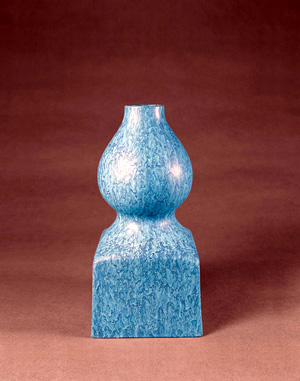 清乾隆 炉钧釉天圆地方葫芦瓶 炉钧釉是清代雍正、乾隆年创烧的低温窑变花釉品种,属低温颜色釉类,此件葫芦瓶,造型独特,胎体硕大,柔和了道教“天圆地方”之说,胎质坚硬,全器施满炉钧釉,施釉均匀,釉色流淌和缓且变化自然。