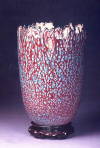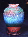 我国清康熙年的官窑曾经烧制过一种铜红铜绿釉,也就是世界著名的“桃花红”这是属于铜红之上自然出现绿斑点者。但因无法控制及复制,存留在世间之作品寥寥无几,尤其在铜红之上出现鲜明铜绿者更难一窥其真貌。至今只有少数收藏在日本、英国、美国各大博物馆,但烧制出的红绿两色都不明显。