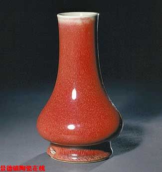 郎窑红,即郎窑烧制的铜红釉瓷器。 郎窑是清代的官窑之一,即康熙四十四年至五十一年(1705-1712),江西巡抚郎廷极督理监烧的御窑。 郎窑的产品除郎窑红外,还有郎窑绿,郎窑兰釉及描金、郎窑青花、五彩等。而郎窑的最大成就是恢复了明中期失传的铜红釉烧造技术,成功地烧成著名的郎窑红。 以铜原料作为着色剂,早在汉代的铅绿釉陶器上就使用过,铅绿釉就是铜在低温氧化焰中的呈色。高温铜红最早出现在唐代的长沙窑,另在唐长沙窑和宋代均窑中还作纹饰使用过。真正烧成浑然一色的铜红釉瓷器始于元代的景德镇窑,釉色为暗红色。它为后世铜红釉的发展打下了基础。到明早期的永乐、宣德年间景德镇窑才真正烧成通体鲜红的高温铜红釉瓷器。可是到明代中期这种烧造技术就失传了。直到200多年前的清代康熙朝,在郎窑中才又成功地烧制出高温铜红釉瓷器。 郎窑红是铜红釉中较鲜艳的一种,其釉面光洁透亮,有玻璃质感,开纹片并有牛毛纹,釉色深浅不一。色深者红艳,有“明如镜、润如玉、赤如血”的特征,其釉色莹澈浓艳,仿佛初凝的牛血一般猩红,光彩夺目。色浓者泛黑,色浅者粉红,色淡者暗褐。 郎窑红器里釉有米黄色、微青色、白色三种,均开有纹片。 郎窑红器足底釉有米汤色,苹果青色,均显露红色的斑晕,偶然也有红釉底和白釉底。 郎窑红器有单层釉和双层釉两种。双层釉是没有“脱口”现象的,单层釉者其口沿釉在高温中往往下垂流,使口沿显露胎骨之色,一般呈白色、米黄色、浅红色或淡青色,形成了“脱口”。由于釉逐渐垂流,使器物上半部釉色浅淡,下半部釉色深艳,形成了“垂釉”。但因为制作工艺精湛和掌握好火候,使郎窑红器垂釉一般均不过足,称之“郎不流”。统称“脱口、垂釉、郎不流”,这是郎窑红器的鉴定要点。但是“郎不流”也不尽然,根据耿宝昌先生的调查统计,约有15%是流釉过足而稍加修整的,但与后世窑变釉的斩足现象又有程度不同的区别。 郎窑红釉器,在其他方面也都具有康熙朝的时代特征。一是胎骨洁白细密而坚硬,足底露胎处有火石红;二是口沿涂有粉质的粉白釉或浆白釉,且多有破泡;三是修足有平切式、平切棱角略圆式、滚圆式或为里收外斜削的二层台式;四是器身红釉与足除露胎处有一条白色线;五是器型独特如观音樽、油鎚瓶,笠式碗等都是康熙时极为流行的造型;六是大多数无款,偶有青花“福”、“寿”、“大清年制”款。 特别值得一提的是,铜是一种很活跃的元素,在不同的烧制气氛下,铜的呈色是不一样的。正常的铜红是在还原气氛下的呈色,但由于古代窑火、窑温等控制并不是很精密,常常会出现烧制失败。如果气氛控制失误,使窑内呈氧化气氛,则铜则会呈层次不同的青绿色,郎窑同样也存在这样的问题。传世的郎窑器有所谓的“郎窑绿”或称“绿郎窑”,又有一种器里釉为红色而器外呈浅绿色的称为“反郎窑”,这些就是当时流传下来的郎窑红器的变异类。“郎窑绿”器的特点与郎窑红器基本上是一致的,可以用相同的原则加以鉴定,而“反郎窑”器则多为水盂等小型器,数量极其稀少。 由于康熙郎窑红釉瓷器的珍贵,物罕而价昂,因此后世仿造者比较多,有些仿得很高超,几乎可以乱真。但仿品是无法摆脱它的时代特征的,与真品是不同的。通常“郎窑红”仿品多为民国时仿制,也有采用雍正时的仿哥釉器再加绿釉或干脆加彩来仿康熙各色郎窑器的。其仿品一是釉面多出现白色星点;二是上半部釉色与下半部釉色反差较大,不协调;三是胎质较松不甚密;四是分量过轻或过重;五是器型没有康熙时的典雅端庄;六是口沿和圈足的工艺不一样。只要细心观察对照,仿品和真品还是可以区分的。