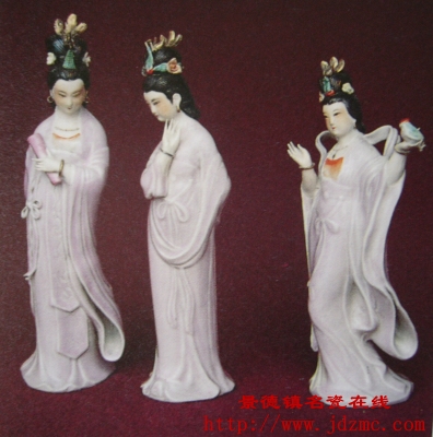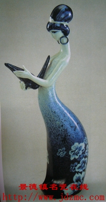 以舞蹈为题材的作品也不鲜见,刘远长《春燕展翅》就是典型之作。这件作品不仅造型优美,技艺精湛,而且工艺难度相当大。工艺难度不仅因为短裙是镂雕作品,而且因为其单腿立地,支撑整个舞蹈身体的造型,令人叫绝,而成为历史珍品。景德镇雕塑瓷厂的《唐代仕女》,也是取材于唐人舞蹈。舞姿的曼妙,体态的优美,色彩的淡雅,格调的清新,生动地再现了唐代乐舞的形象。
