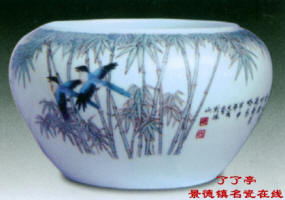 在工艺美术的创作中,无论是人物、花鸟、山水的具象图案,还是以点线面组成的抽象图案中,总是以美的形象、美的形式给人以美的享受,使人愉快,使疲劳的身心得到体息,也使人领略到生活的美好。形象是美的必要条件,没有具体、生动的形象,也就没有美。山水画就是以具体生动的形象给人以美的享受。 自然界的山山水水在人类出现以前就存在的。人类在征服大自然的过程中,也逐渐改造了大自然,人类也就把整个大自然当作自己的审美对象和艺术对象,我国人民按照自已的理想和想象,创造了无数生动的山水画的形象。 山水画是自然界美的一种反映。自然山水美是客观存在的,是大自然赋于的。人们欣赏山水画,往往结合着生活的想象和联想,雄伟变幻的黄山,奇特秀丽的桂林山水就给人以不同的美的感受,把它看作是人精神的拟态,自然美是生活美的一种暗示和象征,使人们联想到生活的美而感到了它的美。 山水画作为工艺美术的图案之一,就在于它具有美的功能,能给人以美的享受。我们欣赏山水画,能使人胸怀宽畅、通达,滋生对祖国锦绣河山的爱国热情和自豪感,丰富人们的文化艺术生活,提高人们的审美能力。随着人们的物质生活和精神生活的提高,对山水画的欣赏能力和要求也不断提高。 陶瓷山水画是属工艺美术的范畴,是陶瓷装饰的一个分科,陶瓷山水画对美化生活、装点环境、提高陶瓷的艺术价值和使用价值、提高人们的审美意识都将发挥重要的作用。千余年来,我国的陶瓷艺术创作了无数生动的艺术珍品,是我们今天学习、研究、借鉴的宝贵的优秀传统。 陶瓷山水画属于工艺美术,它的一个显著特点是具有装饰性。所谓装饰性,是说它必须依附在陶瓷形体上,并和陶瓷造型取得和谐一致,不但显示瓷画山水的美感,而且充分显示而不是掩盖陶瓷的材质美。 陶瓷山水画具有装饰性,首先是中国山水画本身具有装饰性。中国山水画具有装饰性,是由它的特点决定的。中国山水画,不论是工笔还是写意,在构图、色彩以及笔墨上都带有自身的特点。在构图上,油画、水粉、水彩只有一个焦点透视,而中国山水画的构图就有散点透视、三远法、鸟瞰法,这种构图法有很大的随意性和适应性,不但容易画长卷和立轴,而且能和各种不同的陶瓷形体进行有机的结合。 中国山水画强调笔墨情趣,强调画面的意境。中国山水画常采用夸张、变形、概括、简练的手法来表现对象。在描绘客观对象时,不以表现对象真实为目的,而是借助笔墨为手段,以达到画面的诗情画意为最高境界。因此,中国山水画的山水要比真山真水更美,更符合诗意,更符合人们的理想境界。 中国山水画的色彩,不强调光色原理,而强调入对色彩的主观感受。中国山水画使用色彩的原贝口是:以墨为主,以色为辅,墨分五色,色不碍墨。对于山水画里的云雾、水面一般不作过多的渲染,而是利用宣纸的白留出即可。青绿山水、金碧山水画的色彩就带有明显的装饰性。 中国山水画还讲究“以白计黑”、“知白守黑”,讲究一个“藏”字等等,中国山水画这些特点是最具东方艺术特色的。在表现客观对象时是“借景言情”、“寄情于景”,是画面的诗意,是“气韵生动”。“意境”是中国山水画家追求的首要目标。中国山水画强调的是个人的功力、学识和修养,在“物”与“我”的关系上,“我”始终处于主导地位。中国山水画强调个人的内涵修养,强调笔情墨趣,强调诗情画意,因而形成了中国山水画的特殊审美特色。这种中国山水画的审美特色、独特的构图章法和强调笔情墨趣等等,正是中国山水画的特点,也是中国山水画的优点。这种特点和优点,正是中国山水画具有装饰性的原因所在。 正因为中国山水画本身具有装饰性,作为工艺美术的陶瓷山水画也具有装饰性。中国山水画不等于陶瓷山水画,虽然两者都是艺术晶,都具有装饰性,但瓷画山水是属工艺美术的范畴,两者有本质的不同。瓷画山水更注重它的装饰性的同时,还要注意它的工艺性。瓷画山水,除了自身的绘画技巧外,还要考虑到瓷器的造型、瓷质以及使用的工具、材料、颜色的属性等多种因素,同时要预见烧后的呈色效果,才能达到预期的目的。 现代中国山水画日新月异、流派纷呈。新的创作手段、新的表现手法都可以作为创作瓷画山水时的参考和借鉴。这种参考和借鉴有利于陶瓷山水画的创新。固步自封,沉醉于某一家画法;很难开创改革创新的新路子,但是照搬中国画,一味追求中国画中的效果,不顾陶瓷装饰的工艺特点,也很难创作出高水平的陶瓷作品来。 陶瓷山水画因在瓷上或坯上作画,更应该以最少的笔墨来达到画面的意境,尽量利用空白的处理来达到瓷质洁白之美感。瓷画山水要善“藏”善“露”,切忌画得满满的,艺术的高低不在画得多少,而在于对陶瓷山水画的装饰性、工艺性的理解与运用。陶瓷山水画的装饰性和艺术性是统一的。 中国山水画的特点,尤其是山水画的构图法,很容易和各种不同的陶瓷造型取得和谐一致。用山水画进行装饰陶瓷,一般采用平面布局,强调宾主、虚实、呼应、开合等法则,根据不同形体,工具、材料的不同属性,通常采用开光、通景、分割等方法进行装饰,既符合美的规律,也符合人们的欣赏习惯。 山水画装饰在不同的陶瓷器皿上,也要考虑装饰产生的不同效果,切忌生搬硬套。如上下起伏