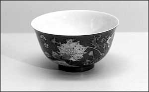 | 红地珐琅彩“花开福贵”牡丹纹碗(清康熙年间)。 |