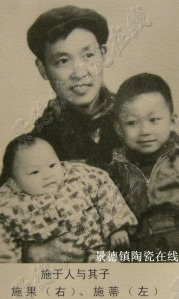 1958年院系调整,三所学校合并后成立“景德镇陶瓷学院”,施于人作为建校人士之一,也是陶瓷设计专业的带头人,负责当时教学计划的制定及课程安排。他在中央工艺美院的同窗,当今著名的陶艺家张守智则留在了北平。 景德镇漫漫千年的陶艺长河有从各旧窑址出土的碎瓷片为证。长江的支流昌江流经陶瓷的故乡景德镇。瓷器,特指高岭土和瓷石,经高温烧制而成的材器,具有其特殊的洁白光泽和清脆的音质。周围山区无尽的高岭土,茂盛的松林用于烧窑,丰富的水利资源用以驱动转轮,通畅的河道运输成品,充足的劳动力勤恳劳作,使得景德镇成为陶瓷工业的中心。 景德镇可能是世界上惟一“以瓷为生”的城市,制坯、上釉、彩绘、烧制、包装、销售、出口,是一个连续的过程。工业用瓷、日用瓷、艺术瓷定义了这个城市。“新平冶陶,始于汉世”,新平是景德镇最初的称呼,汉世是东汉(公元25—220年)。在前几个世纪中,除了屈指可数的几场天灾人祸之外,“千年窑火”整整燃烧了千余年。传统陶瓷行业的起伏深受政治、经济和文化的影响。1911年清朝灭亡,江西自此饱经战乱,尤其是在20世纪30年代日本侵略中国之后,景德镇瓷业日渐衰落,施干人经常思考重振景德镇的方案,20世纪80年代末他撰文指出传统瓷器必须迎合现代市场的需要。从业者不仅要研习陶艺,更要研究市场和社会,他倡导全市共同努力重振瓷都。“景德镇是瓷器之都”,他写到,“重振瓷都,这将是每一个工作在瓷都的陶瓷美术工作者义不容辞的光荣责任!”
