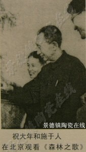 去问他教区的神父,他会告诉你施于人不辞辛劳地筹款重修一座失火的老教堂。事实上,施于人是在为联系教堂义卖的路上不幸遇上车祸的。今天,仿佛凤凰涅盘,一座新的教堂建在原址,供众多景德镇人前往祈祷。 去问他的妻子刘海贤,她可能会唠叨他没有商业头脑,他的作品经常送人作结婚礼品或交换些不值钱的服务;她会告诉你施于人任凭鸟笼占据了院子里的整个棚架;她还会告诉你,施干人颇有音乐天赋,会弹钢琴、拉手风琴,喜唱民歌,他会做衣裳、剪纸、拼花,他被迫离开讲台后只能做木工打家具、在向阳陶瓷厂拉平板车,他是个把自己的大米定量让给家人而自己以南瓜叶充饥的人。 可能源于他的宗教信仰,施于人性格宽容,他在景德镇创作了美妙绝伦的艺术品,他是个文艺复兴式的人物,走过中国的四季,春天的牡丹、夏天的荷花、秋菊、冬梅、幽兰、昙花和红山茶是他的最爱。的确,他不屈不挠地度过了艰难的冬天。 “如果你想了解陶艺”,七弟子之一的秦锡麟说,“你一定要采访我的老师,他的精神如金子般闪闪发光。” 他的精神活在他教过的众多的学生中,照亮了景德镇陶艺的发展方向,他的精神在他的作品中闪烁,道器合一,永远!