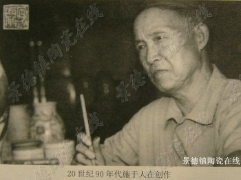和其他语言一样,瓷器作为语言在景德镇是有机的。施于人作为陶艺家,弄通了有关的工艺环节的所有技术和知识,他特别推崇明代的“斗彩”,对比色块交相辉映、生动活泼。斗彩是在坯体上先用青花料勾画出轮廓,接着上釉高温烧制成瓷;然后在轮廓间填上釉上彩,最后再低温烧制而成。施于人最喜“五彩”,他不是只用5种或8种颜色,而是用上所有的颜色。受柔和的西洋画的影响,18世纪时,粉彩的出现拓展了釉上彩的表现能力。施于人也是釉下、釉上彩绘的高手,这些明亮的色彩对比强烈,使得作品栩栩如生、容光焕发。在他漫长的陶艺生涯中,施于人自己研制了新的釉色,不拘常规着色,比如不完全填满斗彩的轮廓,或含蓄地降低色调以减低对比度。对于中国传统瓷器,施于人尤其热衷前清康熙、雍正、乾隆年间(1662—1795年)景德镇鼎盛时期的作品。 虽然景德镇在1911年清亡之后继续生产瓷器,但是民国时期中国战乱纷纷,国家的动荡再一次反映在艺术作品上。在1911年后的10年间,仿制前清作品处处可见。尽管这些作品下笔的技巧纯熟,摹仿的图案纹样仍很快无人问津。在景德镇,几个民间艺人独立创作了一些作品——既不抄袭旧 在旧时代,技艺知识一脉相承,代代相传。对于一个有数百年族谱的世家而言,其家族姓氏远远重于个人的名字,沿袭这个传统,艺人个人的署名现象鲜而有之。再说每件作品都经过70多道工序,无数双手。瓷器生产是一个社会性的协作过程,从手工粉碎瓷骨到最后完成绘画,它要求一道道高度专门化、高强度劳动程序。传统上,某一个画工甚至专门到只添加一种色釉,或专写书法,或只管勾画边角,一生就只做这么一道工序。在这样的前提下,某一个人负责某件作品的想法在集体重于个人的社会中是行不通的。西方的陶瓷工作室,艺术家一个人包揽揉土、制坯、上釉及烧制全部工艺流程的模式,和中国陶瓷的传统毫不相关。 施于人撰文称赞“珠山八友”继承了陶瓷传统。他记述八友勉力创新,但他们的大部分作品仍然临习清画,尤其是清朝的水墨画,但是瓷器不仅需要自己的绘画语言,而 且要求其特殊的技巧,瓷不是平面纸,它是三维的、圆形的。因此,绘画和瓷器的技巧迥异。《陶瓷彩绘》一书首次系统地向20世纪的艺术家解析了陶瓷彩绘的每一个步骤。虽然这部书几乎完全由施于人编写,但由于他的政治问题而没有他的署名。多年之后,中央工艺美术学院院长充分肯定此书在今日依然适用,曾对施于人说:“你的《陶瓷彩绘》至今还管用,真不容易!当初你一个字一个字刻铜版,花了多少心血!”施于人是系统论述陶瓷的第一人,是他第一次详尽阐述了整个工艺过程。施于人通晓陶艺的全部过程,他教授材料性能,他可以制坯和烧制,他精通釉彩,从青花、古彩到新的进口釉料,他稔熟年号以及各个时期的组分和纹样,从而推断瓷器残片的年代。他喜欢步行或骑车,因为这样方便寻找有意思的古旧残片。有一回他听说某地施工挖土方,他去那里搜寻了整整一夜。在他家里堆集了一箱箱的残片。