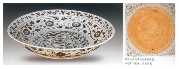 耿宝昌先生《明清瓷器鉴定》第3页云:"元、明以来胎体足部所呈现的火石红痕,时代越早便越浓重,到清代乾隆初期便渐行消失。"第374页又说:"火石红:胎体内含有矿物质,在不施釉的部位,受火自然泛出,或有意涂的酱泥,现今景德镇复制的元、明青花器,以新砂垫烧,或是入窑前新瓷胎的砂底受了潮,也会出现火石红现象。" 张福康先生在《中国古陶瓷的科学》第122页中云:"元青花瓷器的器底露胎处常呈现出浅浅的橘红色,俗称"火石红",俗称"窑红"。火石红是由胎中的铁质和可溶性盐类在干燥过程中在露胎的器底处富集,在烧窑结束后的冷却过程中由于二次氧化便出现这种色调,现代景德镇仿制的元、明青花器,人为地在器底涂上一层含铁量较高的酱水,或以受潮的新砂垫烧,也会出现火石红。"