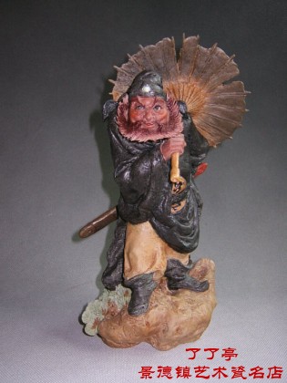[作品欣赏之钟馗醉酒] 这幅《钟馗醉酒》画得十分生动有趣,把钟馗的酩酊醉态,刻划得淋漓尽致。你看他坐在那里烂成泥团,脑袋耷拉下来埋进了胸脯,头胸肚三位一体,缩成一团。再看身旁的那酒坛子,横倒了下来,剩酒从坛子里汩汩流出,流成一地。更为有趣的是,人事不省的钟馗,我们猜想他还闭着眼睛说醉话:“鬼敢来焉?!”真是一幅绝妙钟馗醉酒. 作品虽然有褒有贬的表现钟馗醉卧酒坛、酣然大睡的情景。但是钟馗是刚正不阿的文人,虽然长相丑,而心地却不丑陋。从人物面部表情的刻写,那紧锁的双肩、沉睡的双眼、卷翘的胡须、高高的鼻梁,从脸部神态中将其正义感的心境表现得淋漓尽致。 (追溯陶瓷文化艺术创作的源头,使大家更了解陶瓷创作典故的背景与来源。了了亭·景德镇名瓷在线整理编辑) |