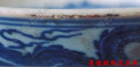 器件口边有细微的损伤,釉断续剥落,手摸有毛糙棱刺感。