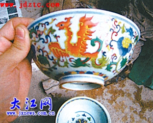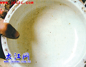 PP粉(即高锰酸钾)加工过的“雍正官窑”碗 |