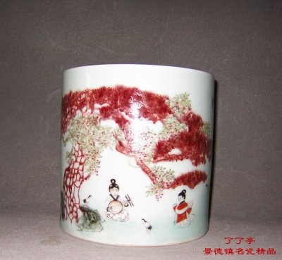 王采是近年来崛起的江西省工艺美术大师,已曾多次在大展中获奖,取得了令人瞩目的成果。那清丽、俊逸、明朗、自然的陶瓷人物画风格,确实给人们留下了深深的印象。 王采出身于景德镇“陶瓷世家”,父亲王锡良是名誉海内外的中国工艺美术大师。然而由于众多的客观原因,王采没能像妹妹秋霞那样,自幼“随父学艺”,仅能凭着自己的耳濡目染和悟性,在乡村、在陶院、在坯房、在自己的小斗室里“信笔涂鸦。”他说:画就是画,就是要好看。他选取了别具一格的表现语言,这就是被人称作“写意”的人物画。他感到自己就适合表现这种优美,并想把这种优美表现推到极致。仅就此一点来讲,他比很多人都聪明得多。因为有些人是袭前辈的风格亦步亦趋,有些人则是弃中崇洋,充当前卫派。而他却是在汲取传统精髓下,力求在表现形式上求得改造和突破,以形成自己作品的个性特征。 读王采的陶瓷作品,可以从中窥见到以下特点: 平者见奇,繁简得宜 有人说王采的瓷画喜拙不喜巧,喜怪不喜平,喜简而不喜繁。确切地说,王采是极少有传统工笔人物的画作。但他的陶瓷绘画无不渗以古人的勾、描、晕、染之法,而且深蕴其父锡良的造诣真谛。其作品打破了传统画景的内敛式的构图法,往往在镶器纹饰的布局上使主体画冲出边框形式作大开大合、大争大让的外张式的延伸,使得画面有“平中见奇、画断景联”的展示效果,有了“空、虚、远、近”的纵型的空间感。其次落笔以简代繁,以少胜多的处理,此中又不失保留一股天趣拙味,笔意之间恰到好处。《得意图》写一高贤隐士在紫云笼荫下、奇石怪岩旁饮酒自得的情景。有人称赞为“极为意味”。这种意味既对人物形体、形象特征的点划,也有对环境、气氛及衬景的规划,而这些都在王采简繁之是的控制之中。隐士的醉酒而狂歌,侍童的斟酒而乏力,无不通过寥寥数笔取代了工笔斤斤营营的形体刻画,经过艺术的取舍并通过技能完好地表达出来了,使画者与观者都由此产生审美心理的共鸣。 亦工亦意,不刻而隽 这是王采人物最具创意之处。关于“小写意”,在理论上古人也曾有过论述,如清朝郑绩在他的《梦幻居画说简明》中就讲到:所谓逸者,工意两可也……,话虽这么说,但在陶瓷上作“小写意”并非没有难度,一是位置经营,尤其是青花与粉彩的结合,在器型的展面、色彩的处理、布局的疏密及运笔的势度,往往有个“时间差”的磨合过程。二是意与工乃两个极端,结合不当,则两败俱伤。王采在实践中摸索出了自己的一套路子,循“树为君,人随之”的传统理念,意笔写景、工笔写人,故能工意适度,相得益彰。他的《清风图》瓷板画,大笔扫绘出翠竹数竿,意到笔不至,却细笔勾描出村姑扶桃而立,当工则工,当意则意,自有一种放松自如、意韵横生的效果。应该指出的是,王采曾攻习过素描写生,也研习过国画临拟,这为他改造陶瓷传统工笔人物画提供了基础功底,也正是他今天成功之处的得益所在。 托物喻人,弦外有音 王采的瓷上人物画,善用烘托的方法。烘托的重点是造景。而造景的取材,却是因人而设。造景之法,有的疏,有的密;有高下之分,有纵横之别,不拘一格。疏者如《风静长月明》,略施竹影笋石,有清虚潇洒之意,而不嫌空松;密者似《松韵图》,虬松如盖,蔽荫上下,有天籁之旷、阔野之韵。至于《不可一日无此君》,些缀的数点桃红,自有雅逸幽闲之趣,而不为寂。 王采的背景处理,多贯以写意青花的绘画,对松、竹、梅情有独钟,于根、干、枝、叶,往往放笔纵逸,强调线的韵味。于叶片、花卉,则讲究淡描、薄染,常常处理为逆光效果,令其晶莹透亮。对背景的空间处理,也常有或粉彩、或新彩的交映,《松间明月照》瓷板画,前景短丛的桃树,中景高耸的苍松,次景席地而坐的少女及背景的一轮圆月,还有那缠缘在松巅枝间的紫藤花,其是的远近虚实颇有层次感,而以花喻其貌美。以松喻其德贞,自是王采表现主题的弦外之音。 昭华琰琬,各成其美 王采的陶瓷作品,大多取材于仕姬妇女,其次是儿童。王采说,他喜欢借女性和孩童,自抒情怀、寄寓理想。他笔下的人物,虽也偶有所本,但大多数却是凭感觉和现象的即兴之作。在他灵感初动的恍惚间,美人明装,载桡兰舟、目送心艳、神留于幽……于是王采在瓷上凭心的触摸,为观者留下了那一举步、一伸腰、一掠鬃、一转眼、一低头之间的倩影,一种经过心灵净化的美,一种可亲近而不可亵渎的美。《清风竹影》写四女或洞箫、或吹笛、或弹筝、或鼓瑟,其情态或嗔、或羞、或喜、或忧,因人因景而异;其姿势或站、或蹲、或倚、或坐、皆不失幽闲贞静之态,可谓画幅尽抒昭华琰琬,各成其美,象一股清泉,汩汩沁入心田。 王采瓷画艺术有自学的功底,有父授的元素,有磨砺的轨迹,也有故土的情怀。他的瓷画往往有“古黟”、“黟山”的题铭,这是他对安徽黟县的根系的表征,其中就有对父辈们的敬重,对先辈们的景仰,也有对历史的超脱,对自我的超越。 |