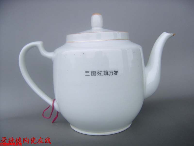 | 文革茶壶系列-井冈山红旗 文革系列-梨壶 文革系列-毛主席诗词茶壶 文革系列-东方红 太阳升 中国景德镇底款 文革 将军罐 鱼小杯 49年 中国景德镇制 出口粉彩瓷盘 70~80年代出口茶盘 景德镇制:色地(绿釉)釉中堆白… 文革语录碗一对 |