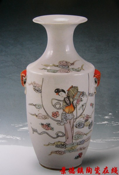 | 胡荣新作 粉彩天女散花瓶 民国时期 | |||||