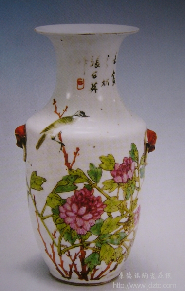 张子英《富贵白头》双耳瓶 白文宏藏 |