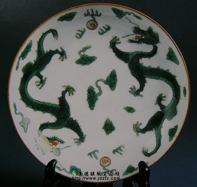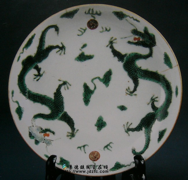 | 清·绿釉双龙纹盘·绘花押红款 | |||||