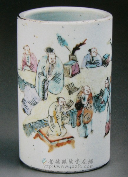 | 清·彩绘人物笔筒·同治年制红款 | |||||