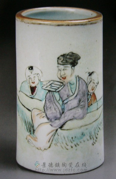 | 清·浅降彩人物笔筒·同治年制 红款 | |||||